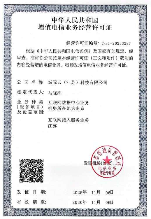 据了解,城际云公司将持续弘扬“说到做到,干就干好”的务实作风,扎实打磨技术实力与服务品质,致力于为客户提供安全、稳定、可信赖的服务。